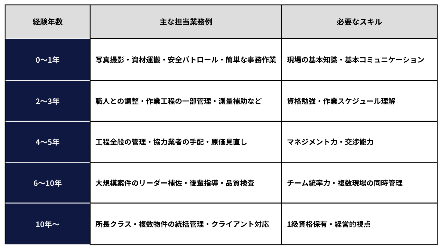 ただし、未経験からすぐにデスクワークの施工管理に就けるわけではありません。