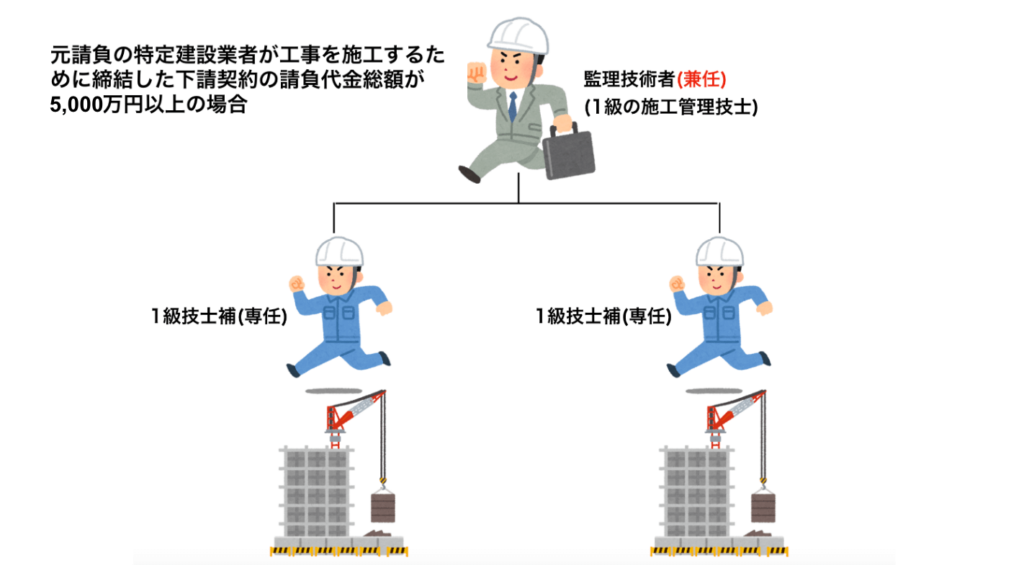 役割大規模工事における監理技術者のサポート役中小規模工事における現場の指揮・監督役
